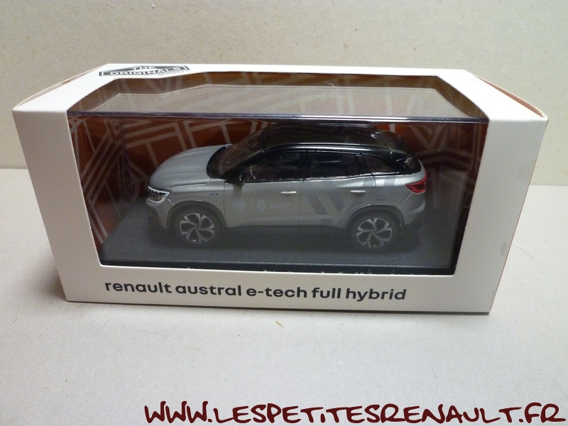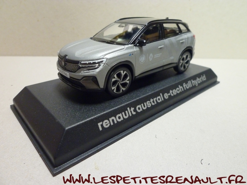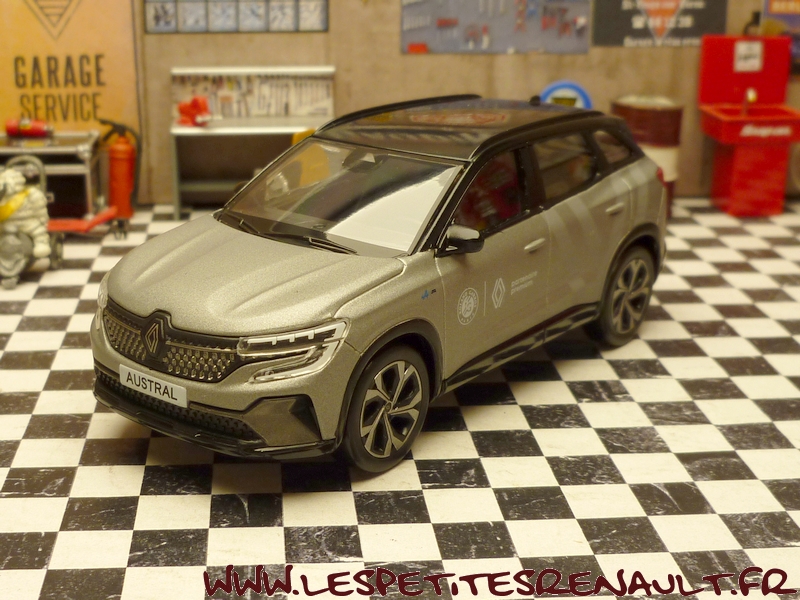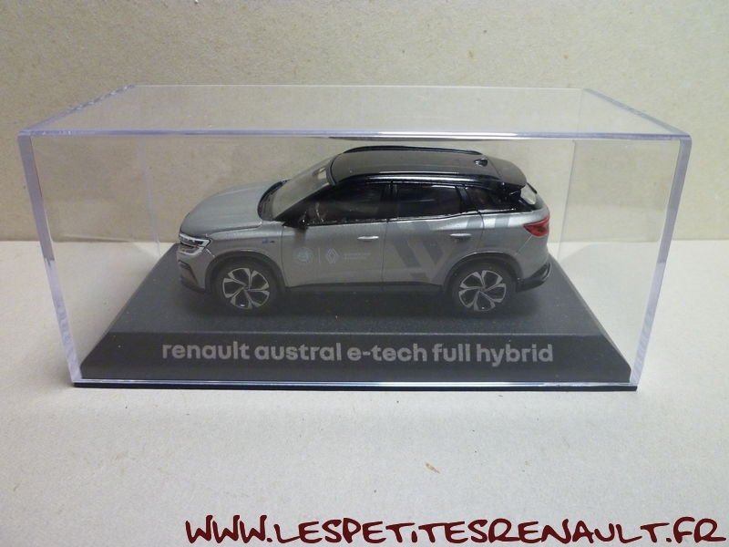 Modèle : Austral Année : 2023 Couleur : Bleu métallisé Echelle : 1/43 Fabricant : Norev Référence : 7717300541 Collection : Non Matière : Zamak, châssis plastique Série limitée : Non Boitage : Boite cristal + surboite Commentaires : Version e-Tech Full Hybrid de couleur Esprit Alpine Gris Schiste satin. Décoration promotionnelle en tant que partenaire premium du tournoi de tennis de Roland Garros |