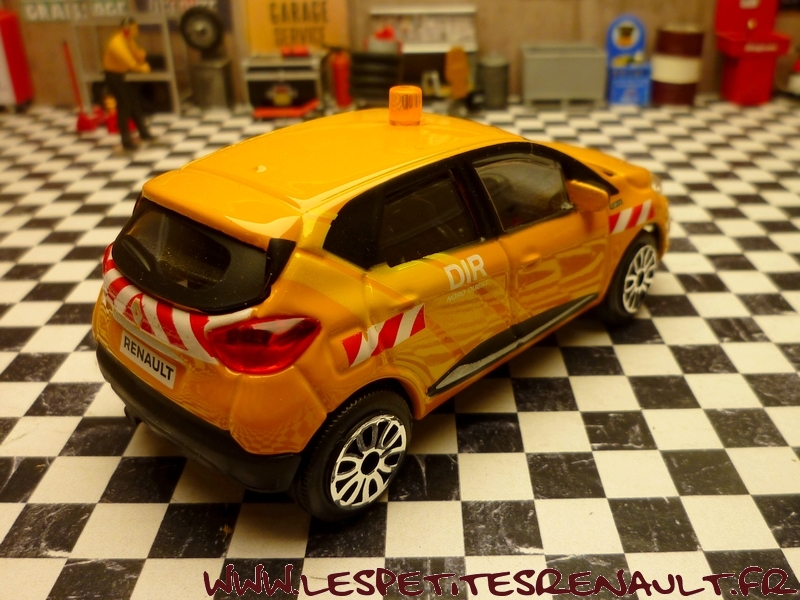 Modèle : Captur I phase 1 Année : 2013 Couleur : Orange Echelle : 1/43 Fabricant : Bburago Référence : 18-30074 Collection : Bburago City Matière : Zamak, châssis plastique Série limitée : Non Boitage : Boite carton + plastique Commentaires : Décoration aux couleurs de la DIR |