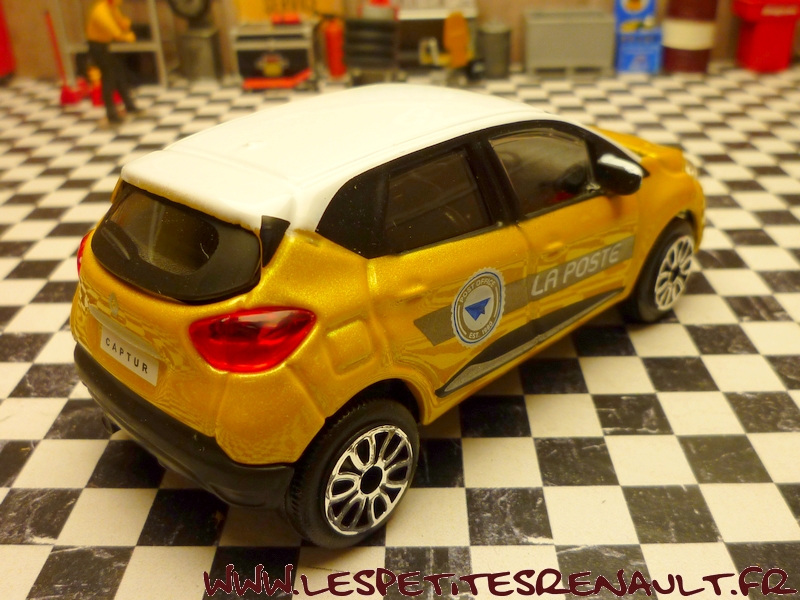 Modèle : Captur I phase 1 Année : 2013 Couleur : Jaune Echelle : 1/43 Fabricant : Bburago Référence : 18-30450 Collection : Bburago City Matière : Zamak, châssis plastique Série limitée : Non Boitage : Boite carton + plastique Commentaires : Décoration aux couleurs de La Poste |
