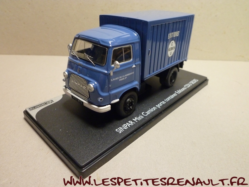 Modèle : MC Porte container Année : 1968 Couleur : Bleu Echelle : 1/43 Fabricant : Eligor Référence : 101361 Collection : Non Matière : Zamak, châssis plastique Série limitée : Non Boitage : Boite plastique + surboite Commentaires : Version porte container des Editions CDU Cedes |