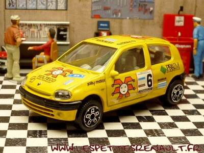 Modèle : Clio II ph1 Année : 1998 Course : Rallye San Martino Equipage : #6 - Couleur : Jaune Echelle : 1/43 Fabricant : Bburago Référence : 4171 Collection : Non Matière : Zamak, châssis plastique Série limitée : Non Boitage : Boite carton + plastique Commentaires : Version fantaisiste destinée aux enfants |