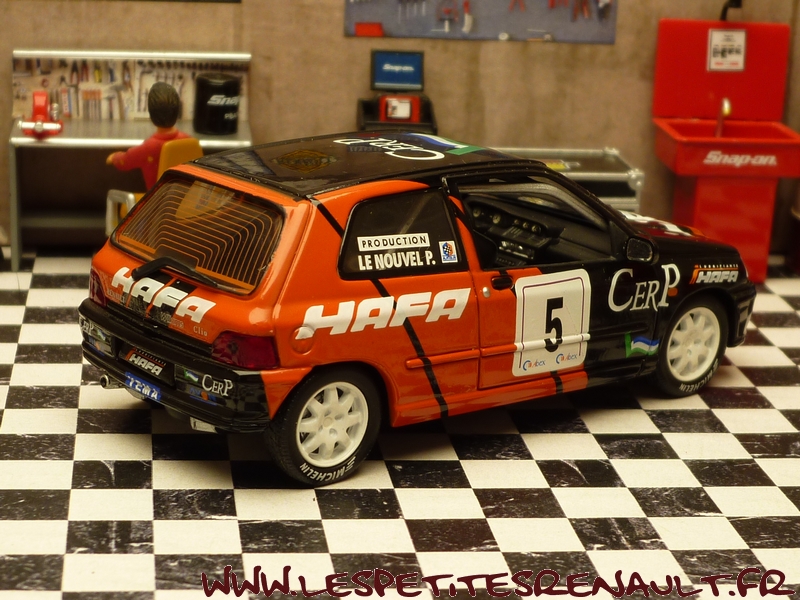 Modèle : Clio I 16S ph1 Année : 1991 Couleur : Rouge et noire Echelle : 1/43 Fabricant : Universal Hobbies Référence : 7711225848 Collection : Non Matière : Zamak, châssis plastique Série limitée : Non Boitage : Boite cristal 12x17 - Surboite Renault Sport Commentaires : Décoration Hafa. Réalisée pour les 50 ans de la marque en 2003 |