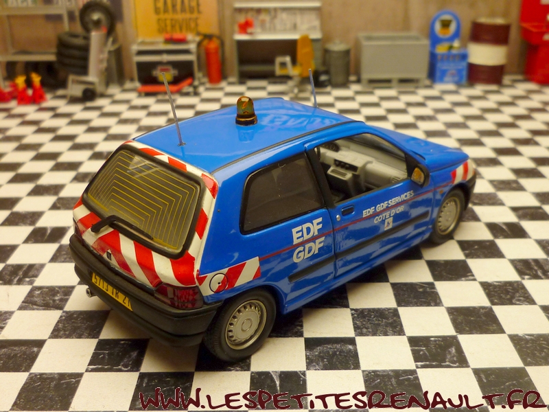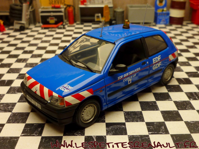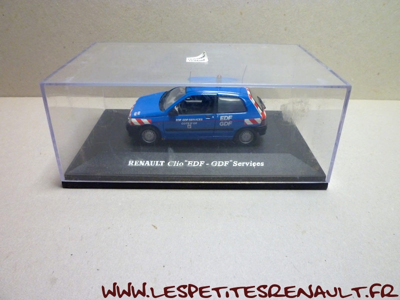 Modèle : Clio I phase 1 Année : 1990 Couleur : Bleu Echelle : 1/43 Fabricant : Universal Hobbies Référence : 2558 Collection : Non Matière : Zamak, châssis plastique Série limitée : Non Boitage : Boite cristal 9x15, surboite carton Commentaires : Décoration aux couleurs d'EDF-GDF Services |