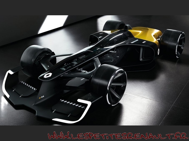 Le concept-car R.S. 2027 Vision illustre la vision de la Formule 1 du futur selon Renault En se nourrissant de ses 40 ans d'expérience en Formule 1, Renault propose une vision de cette discipline en 2027. Une discipline plus sûre avec des monoplaces gérées en mode autonome en cas d'accident et un cockpit fermé en polycarbonate ultra résistant pour protéger le pilote en cas de choc. Des monoplaces plus connectées entre-elles mais aussi avec le public. Par exemple, les fans pourront ainsi avoir accès aux données de télémétrie Une Formule 1 ultra-performante qui bénéficie de 4 roues motrices, 4 roues directrices, batteries à très haute densité énergétique. Une Formule 1 encore plus respectueuse de l'environnement avec une capacité de réservoir divisée par deux en l'espace de 10 ans et un mode 100% électrique imposé lors des passages aux stands. "Le rôle de Renault Sport Racing est aussi d'anticiper ce que sera le futur de la Formule 1 pour que cette discipline rassemble un maximum de fans dans un environnement cohérent avec les objectifs du Groupe Renault. Nous sommes fiers d'offrir au public, aux fans et aux passionnés ce concept qui met en valeur nos idées et nos envies." Cyril Abiteboul, Directeur Général Renault Sport Racing. |