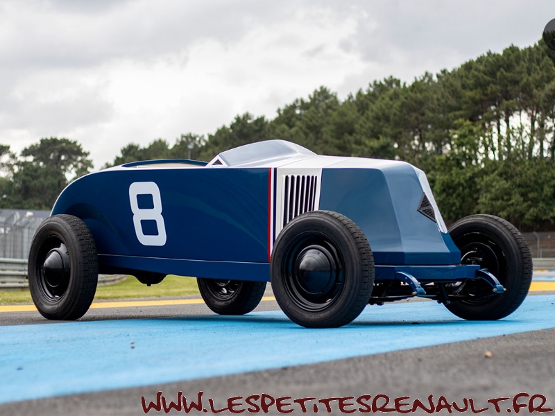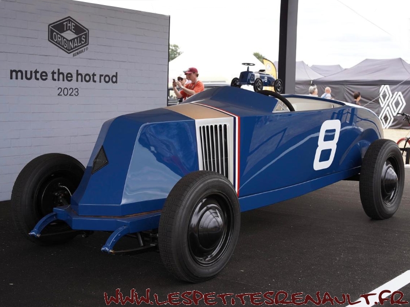 Renault MUTE - The Hot Road. Le MUTE est un Show Car réalisé sur la base d'éléments qui proviennent d'une Renault 6 CV MT datant de 1924, mais... 100% électrique La voiture s'inspire directement des hot rods datant des années 1940 Renault Mute mesure 3,6 mètres de long pour 1,6 mètre de large Il embarque une motorisation dérivée du kit rétrofit proposé pour la 4L, la R5 et la Twingo Les seuls organes techniques qui ont été conservés de la 6cv MT sont le châssis, la partie avant de la carrosserie et la colonne de direction. Le moteur et quelques autres pièces mécaniques serviront à remettre en route une autre 6 CV présente dans la collection. Le châssis a été renforcé pour accueillir une boîte de vitesses d'un Trafic propulsion accouplée à un arbre de transmission et un pont arrière de Renault 12 4x4. A l'avant, on retrouve un essieu de Renault KZ10 Primaquatre de 1932 doté d'amortisseurs à gaz alors que le train arrière est dépourvu de toute suspension ! La voiture repose sur des jantes de diamètre 15 à l'avant et 400 à l'arrière et sont empruntées à une Renault Frégate. |
