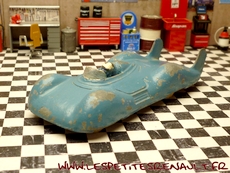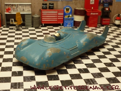 Modèle : Etoile Filante Année : 1956 Couleur : Bleue Echelle : 1/43 Fabricant : Quiralu Référence : 16 Collection : Non Matière : Zamak, châssis tôle Série limitée : Non Boitage : Boite carton Commentaires : Véhicule propulsé par une turbine à gaz Turbomeca de 270 chevaux qui établiera un record de vitesse terrestre de 308,85 km/h, le 5 septembre 1956 sur la piste de Bonneville aux Etats-Unis |