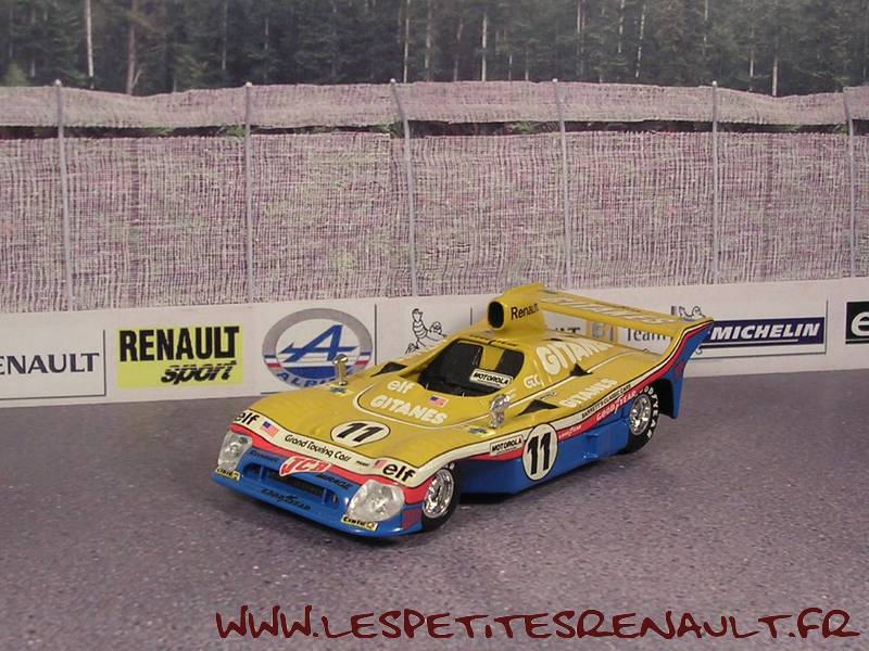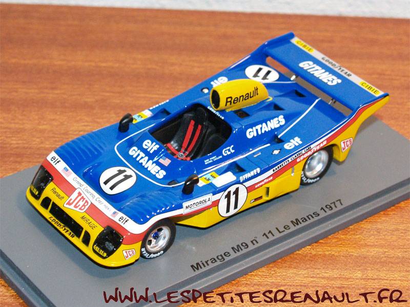 Modèle : Mirage Renault M8 Année : 1977 Course : Le Mans Equipage : #11 - Posey/Leclerc Couleur : Jaune et bleue Echelle : 1/43 Fabricant : Automany Référence : 517 Collection : Non Matière : Résine, châssis zamak Série limitée : Non Boitage : Boite carton Commentaires : Transkit sur base Verem. Décoration inversée. Abandon 5ème heure |