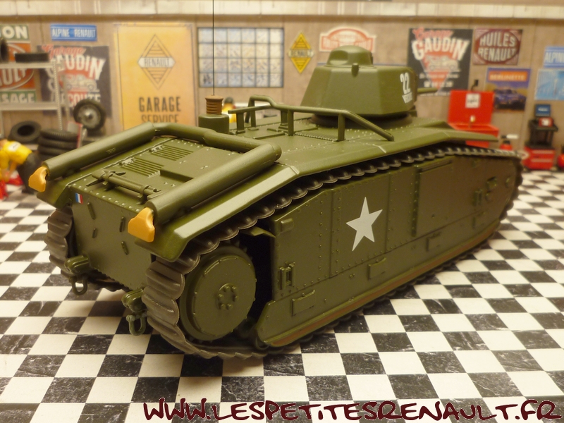 La version initiale (qui donnera naissance au B1 Bis) était souvent appelée improprement Renault B1, mais Renault n'en était que le plus gros producteur. Le B1 fut développé et produit par un ensemble de sociétés, FAMH, FCM et AMX, travaillant ensembles, sous la direction technique de l'arsenal de Rueil. Le 16 août 1944 renaissait à Orléans, aux ordres et sous l'impulsion du commandant Lesage, le 13ème Régiment de Dragons, créé par l'ordre 423 du 7 octobre 1944 sous la forme d'un régiment à 3 escadrons, 1 équipé de SOMUA, 1 de B1 bis et le troisième de chars légers. Le 2ème escadron, équipé de B1 bis, était aux ordres du capitaine Vuillaume. Il comprenait 3 pelotons à 5 chars. En septembre 1944, l'autorité militaire fait savoir à la Régie Renault (créée le 14 septembre 1944) qu'elle envisage de récupérer des chars B1 bis qui ont été abandonnés sur le champ de bataille de Normandie par la Wehrmacht. André Gerin, du service des marchés de la Régie Renault, est chargé de ce travail. Les chars récupérés par les Allemands, avaient été rassemblés chez Renault pour y être transformés en chars lance-flammes. Gerin y avait reconnu des engins du 28e BCC, son ancien bataillon, car ils portaient encore leurs noms. Gerin, avec une équipe de déminage du Génie, se rendit en Normandie. De loin, il repérait les chars et faisait procéder au déminage des routes qui y conduisaient. Des engins chenillés allaient les chercher et les ramenaient pour les monter sur des remorques. Ces remorques avaient été construites en France pendant l'occupation et avaient été récupérées dans le dépôt d'autobus de Paris, Porte des Lilas. Une quarantaine de chars furent ainsi récupérés. On démonta le tout, on tria les pièces ainsi récupérées, et en cannibalisant tout cela, 15 chars B1 bis furent remis en état par la maison SOMUA et l'Etablissement du Matériel de Gien. En avril 1945, le régiment fit mouvement par voie ferrée d'Orléans vers la poche de Royan. Il fut rattaché à la VIème Armée Américaine. Le 15 avril, le régiment était engagé avec comme objectifs, Didonne, St-Georges-de-Didonne et les bois au sud-est de Royan. Les B1bis du 13e Régiment de Dragons en avril 1945 1002xxx MASSENA 10020xx MOWGLI 10020xx BAYARD 1002002 LORRAINE (02) 1002003 DUGUESCLIN (03) 1002004 (04) 1002005 KLEBER (05) 1002006 BRETAGNE (06) 1002008 NORMANDIE (08) 1002012 JEANNE D'ARC (12) 1002014 (14) 1002015 CROUY (15) 1002017 (17) 1002019 ARCOLE (19) 1002022 VERCORS (22) 1002023 1002024 ABBEVILLE (24) 1002028 POITOU (28) 1002033 (33) Dimensions Longueur : 6.37 m Largeur : 2.50 m Hauteur : 2.79 m avec tourelle, 1.80 sans tourelle Poids : 29 tonnes à vide Empattement : 5.23 m Blindage : 60 mm maximum Performances Moteur : 300ch Renault, appareil de direction Naeder Rapport poids/puissance : 9.3 ch/tonne Vitesse maximum sur route : 25 km/h Vitesse maximum en terrain varié : 21 Km/h ( moyennement accidenté), 15 km/h ( terrain accidenté) Consommation moyenne sur route : 220 litres/100 km Franchissement à bords francs : 2.75 m Pente maximum : 40°5, soit 90% Rayon d'action : 180 Km Stabilité transversale : 35° Equipage 1 chef de char : service des armes de tourelle et de la mitrailleuse fixe 1 pilote spécialiste : conduite et pointage du canon de 75, éventuellement tir 1 aide-pilote : chargeur, tir du canon de 75 et aide dépanneur 1 radiotélégraphiste Armement 1 canon de 75 mm 1 mitrailleuse fixe Châtellerault modèle 1931 1 canon de 47mm 1 mitrailleuse sous tourelle Munitions 74 obus de 75 dont 7 de rupture et 6 amorcés 50 obus de 47 dont 20 explosifs 5100 cartouches de mitrailleuses Près de 403 chars B1bis ont été construits avant la guerre et seulement 366 ont été livrés à l'armée. Coûteux, difficile à construire et à manoeuvrer - seuls les militaires d'active étaient habilités à le piloter. Il était très populaire parmis les responsables militaires et politiques de l'époque. Source : chars-francais.net & le20edragons.free.fr |