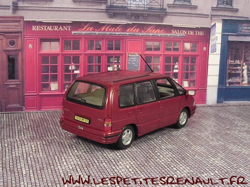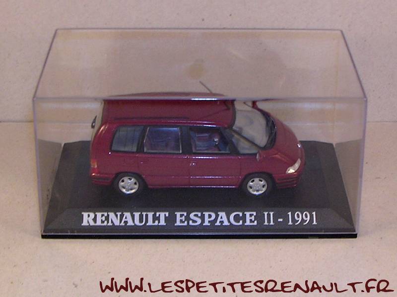 Modèle : Espace II Année : 1991 Couleur : Bordeaux Echelle : 1/43 Fabricant : Universal Hobbies Référence : 58 Collection : Renault Collection (M6) Matière : Zamak, châssis plastique Série limité : Non Boitage : Boite cristal 8x15 Commentaires : Annoncée comme année 1991, mais équipé des jantes version 1994 |