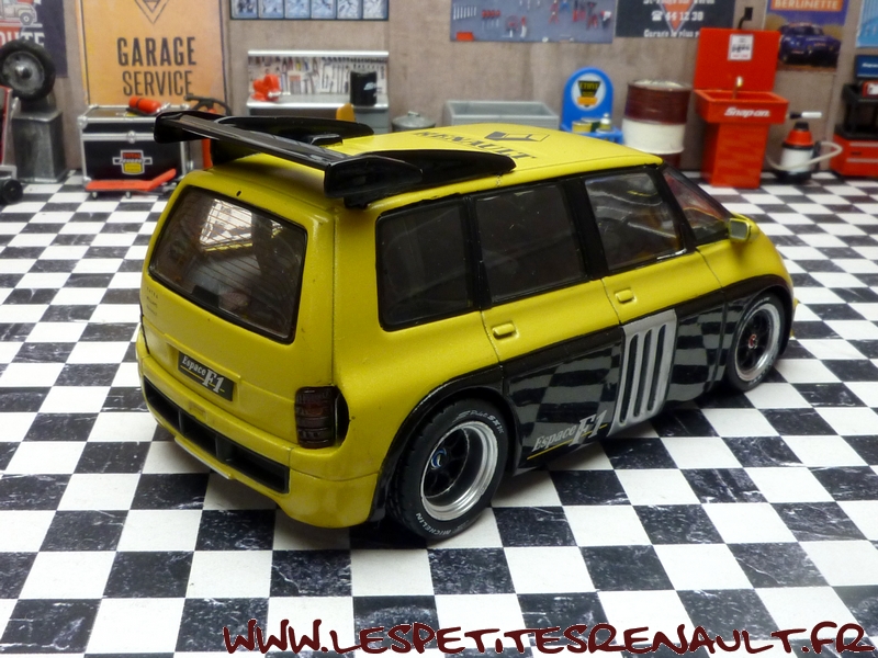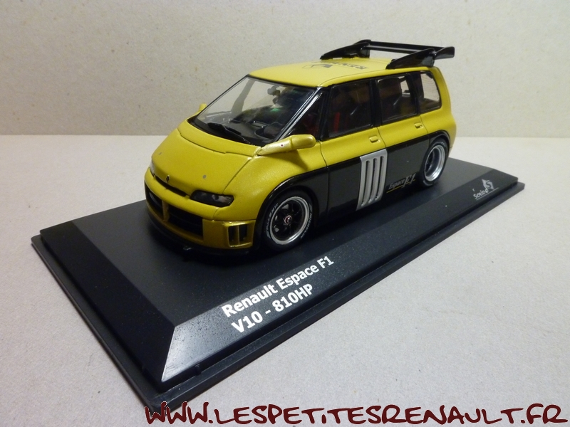 Modèle : Espace F1 Année : 1994 Couleur : Jaune et noire Echelle : 1/43 Fabricant : Solido Référence : S4313901 Collection : Non Matière : Zamak, châssis plastique Série limitée : Non Boitage : Boite cristal + surboite Solido Commentaires : Version dynamique exposée au musée Matra. |