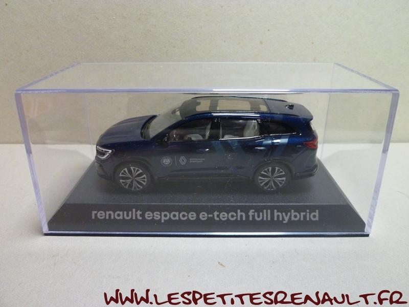 Modèle : Espace VI Année : 2023 Couleur : Bleu marine Echelle : 1/43 Fabricant : Norev Référence : 7717300459 Collection : Non Matière : Zamak, châssis plastique Série limitée : Non Boitage : Boite cristal + surboite Commentaires : Version e-Tech Full Hybrid de couleur Bleu Nocturne. Décoration promotionnelle en tant que partenaire premium du tournoi de tennis de Roland Garros |