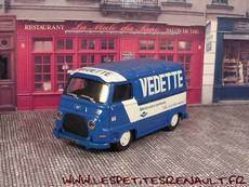 Modèle : Estafette tôlée Année : 1965 Couleur : bleue et blanche Echelle : 1/43 Fabricant : Ixo Référence : 28 Collection : Camionnettes d'antan (Altaya) Matière : Zamak, châssis plastique Série limité : Non Boitage : Boite cristal 7x15 Commentaires : Décoration Vedette |