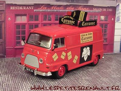 Modèle : Estafette tôlée Année : 1962 Couleur : Rouge Echelle : 1/43 Fabricant : Eligor Référence : V5760 (CEC) Référence : 101022 (Eligor) Collection : -- Matière : Zamak, châssis plastique Série limité : Non Boitage : Boite cristal 6x14, surboite CEC Commentaires : Décoration Vins de Cairanne. Véhicule publicitaire ayant participé au Critérium du Dauphiné Libéré 1962 |