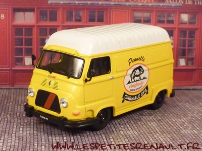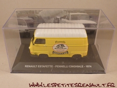 Modèle : Estafette tôlée réhaussée Année : 1968 Couleur : Jaune Echelle : 1/43 Fabricant : Ixo Référence 64 Collection : Veicoli pubblicitari d'epoca (Eaglemoss) Matière : Zamak, châssis plastique Série limité : Non Boitage : Boite cristal 7x15 Commentaires : Décorée aux couleurs de Pennelli Cinghiale. Modèle utilisé en 1974 par la marque mais datant de la période 1968-1971 vue la forme de la calandre et les marchepieds dans le pare-chocs |