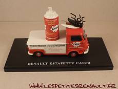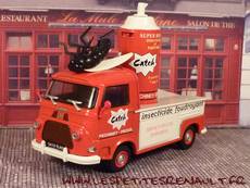 Modèle : Estafette Pick-Up Année : 1961 Couleur : Rouge et blanche Echelle : 1/43 Fabricant : Ixo Référence : 38 Collection : Véhicules publicitaires (Hachette) Matière : Zamak et plastique Série limité : Non Boitage : Socle + blister Commentaires : Version recarossée par Pourtout à Rueil Malmaison d'une estafette plateau type R2130 de 1961 avec une bombe aérosol et une mouche sur le toit de la cabine. |