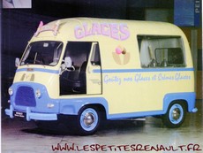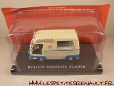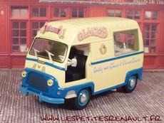 Modèle : Estafette réhaussée glacier Année : 1963 Couleur : crème et bleu Echelle : 1/43 Fabricant : Ixo Référence : 2 Collection : Utilitaires Renault (Hachette) Matière : Zamak, châssis plastique Série limité : Non Boitage : Socle + blister Commentaires : Fourgon 800kg surélevé type R2132 marchand de glace |