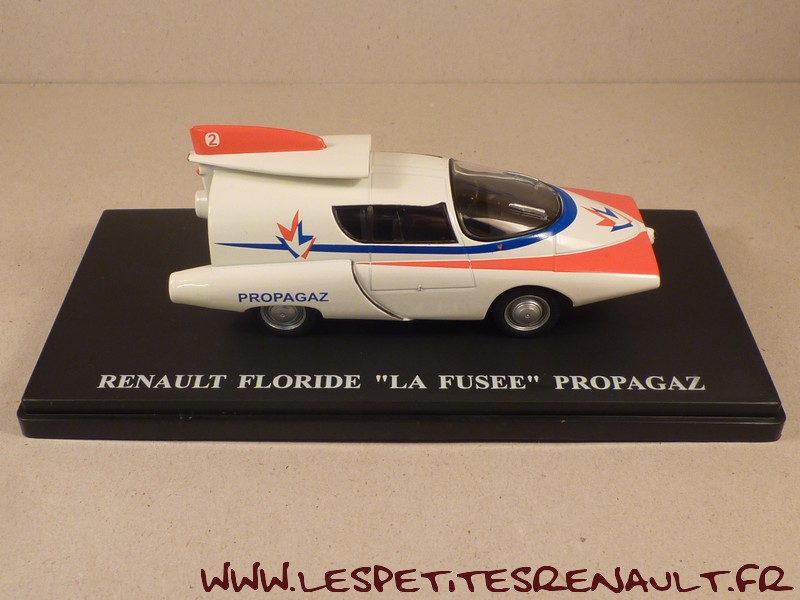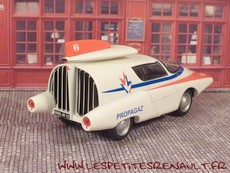 Modèle : Floride recarrossée Année : 1959 Couleur : Bleu, blanc et rouge Echelle : 1/43 Fabricant : Ixo Référence : 51 Collection : Véhicules publicitaires (Auto Plus) Matière : Zamak, châssis plastique Série limitée : Non Boitage : Socle + blister Commentaires : Version recarrossée par Chapon et décorée aux couleurs de Propagaz pour le Tour de France 1959. Il s'agit d'une série de 6 voitures, 3 bleues et blanches aux couleurs de Butagaz et 3 rouges et blanches aux couleurs de Propagaz. Chaque véhicule était numéroté sur la dérive au dessus de la voiture (1, 2 et 5 pour les Propagaz) avec des répartitions de couleurs qui vont évoluer au fil des années. |