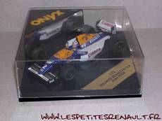 Modèle : Williams Renault FW15BAnnée : 1993 Course : Saison GP F1 Pilote : N° 2 - A. Prost Couleur : Bleue, blanche et jaune Fabriquant : Onyx Référence : 172 Collection : -- Matière : Zamak, châssis plastique Série limité : Non Boitage : Boite cristal 11x11 Commentaires : Les voitures utilisées lors de la saison 1993 étaient des FW15C. Les FW15B n'ont été utilisées que pour les essais avant saison. |