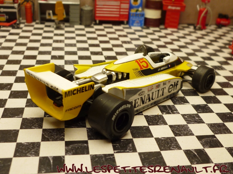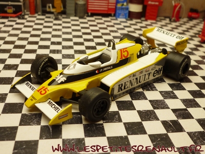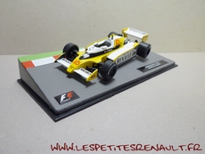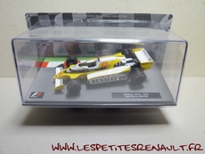 Modèle : Renault RS 10 Année : 1979 Course : GP France Equipage : #15 JP Jabouille Couleur : Noire, jaune et blanc Echelle : 1/43 Fabricant : Ixo Référence : 30 Collection : Formula 1 Auto Collection (Fabbri) Matière : Zamak, châssis plastique Série limitée : Non Boitage : Boite cristal + socle Commentaires : RS10 sur châssis de RS11 avec laquelle JP Jabouille signe la première vitoire de Renault lors du GP de France. Livrée sur un socle imitation circuit |