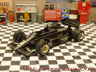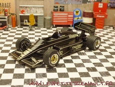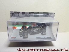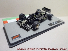 Modèle : Lotus Renault 97 T Année : 1985 Course : Saison GP F1 Equipage : #12 A Senna Couleur : Noire Echelle : 1/43 Fabricant : Ixo Référence : 37 Collection : Formula 1 Auto Collection (Fabbri) Matière : Zamak, châssis plastique Série limitée : Non Boitage : Boite cristal + socle Commentaires : Livrée sur un socle imitation circuit. Décoration non conforme è l'original |