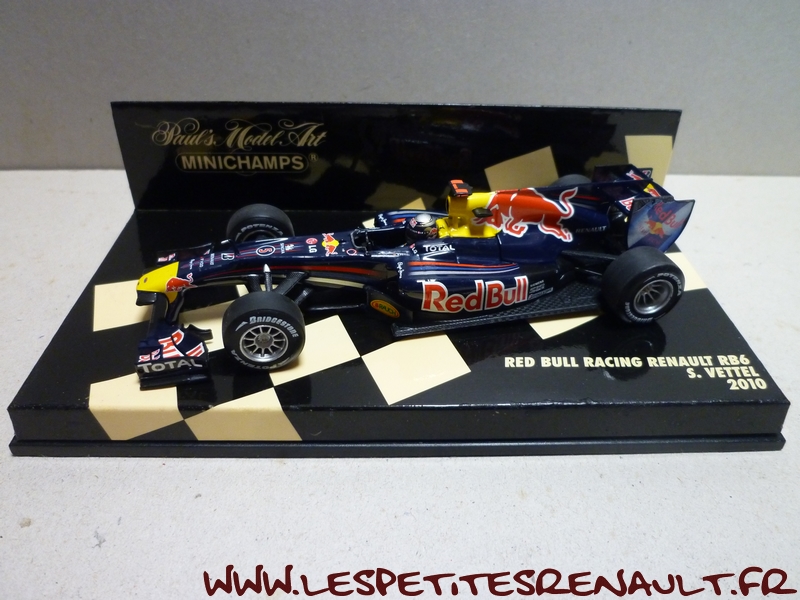 Modèle : Red Bull Racing RB6 Année : 2010 Course : Saison 2010-2011 Pilote : #5 - Sebastian Vettel Couleur : Bleu marine Echelle : 1/43 Fabricant : Minichamps Référence : 410100005 Collection : Non Matière : Zamak, châssis plastique Série limitée : Non Boitage : Boite cristal Commentaires : -- |