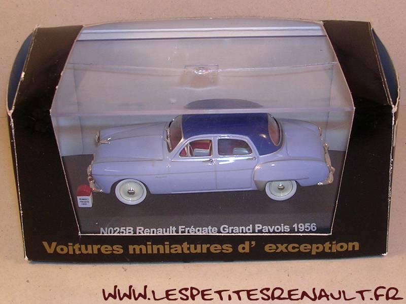 Modèle : Fregate Grand Pavois Année : 1956 Couleur : Bleu ciel et bleu marine Echelle : 1/43 Fabricant : Nostalgie Référence : NO25B Collection : Non Matière : Zamak, châssis plastique Série limité : Non Boitage : Boite cristal 8x15 + Surboite CEC Commentaires : Version bi-tons |