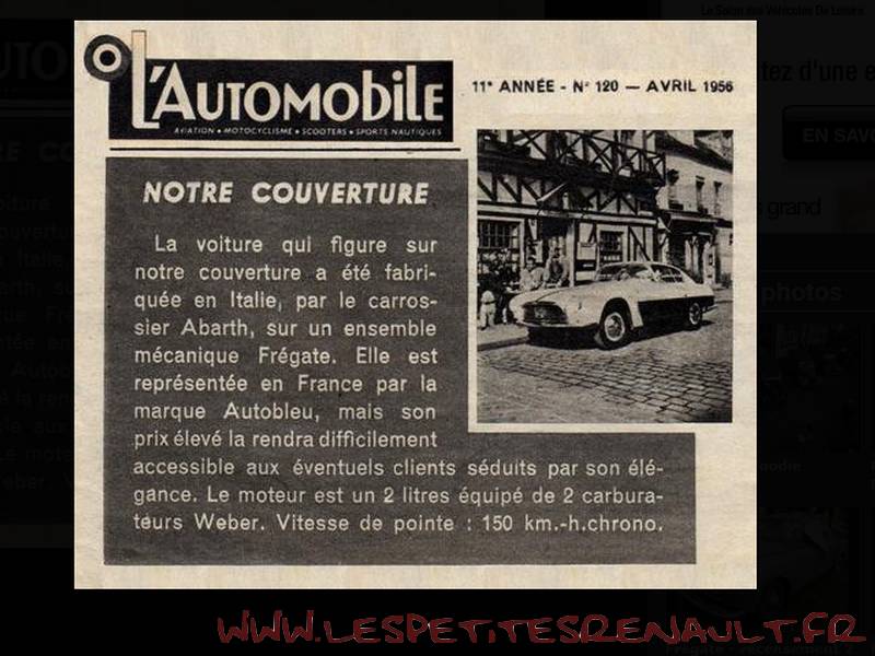 Modèle : Fregate Autobleu Année : 1955 Couleur : Beige et rouge Echelle : 1/43 Fabricant : Esdo Référence : 101 Collection : Non Matière : Résine Série limité : Non Boitage : Boite carton Commentaires : Exemplaire unique carrossé par Boano et motorisé par Abarth |