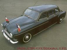 La Renault Frégate Limousine est réalisée en un seul exemplaire en 1957 par le carrossier italien Ghia à la demande de la Régie Renault pour les besoins de l'Elysée (René Coty). Il s'agit pour le constructeur français de retrouver une place de prestige dans les cortèges officiels désormais conduits par les Citroën Traction Ghia a transformé la silhouette un peu molle de la Frégate en limousine de prestige à 6 glaces. L'essentiel réside dans l'allongement de la voiture qui gagne ainsi une soixantaine de centimètres. Le pavillon est rehaussé et les portes arrière sont désormais droites. Le compartiment arrière, très vaste est tendu de drap gris. Deux strapontins face à la route accueilleront interprètes, secrétaires ou aides de camp. Une séparation chauffeur impose une banquette avant très droite, serrée sur le volant. On verra la Frégate Présidence suivre la Traction présidentielle dans quelques défilés, mais sa carrière sera de courte durée. Utilisée par René Coty de 1957 à 1958, elle ne séduira pas le Général de Gaulle qui lui préférera la Simca Présidence ou la DS. Il faut dire que sa motorisation anémique de la Frégate ne plaide pas en sa faveur. Elle transportera le général Eisenhower en visite à Paris en 1959. |