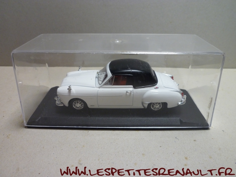 Modèle : Fregate Cabriolet Année : 1956 Couleur : Blanche Echelle : 1/43 Fabricant : Eligor Référence : 100928 Collection : Non Matière : Zamak, châssis plastique Série limitée : Non Boitage : Boite cristal, surboite Eligor Commentaires : Version Letourneur et Marchand. Modèle capoté pour les membres du club Eligor en 2004 |
