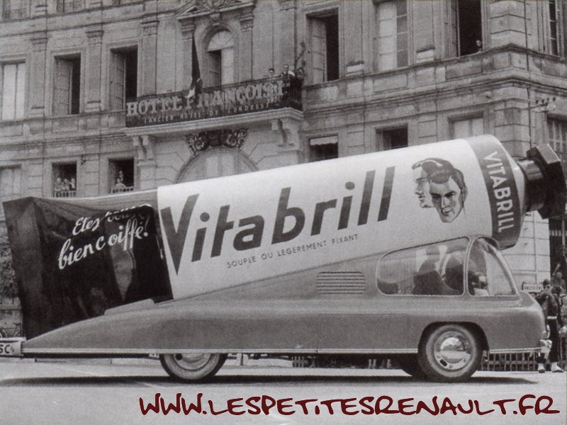 Commentaires : Type R2163. Véhicule publicitaire recarrossé et utilisé sur différentes courses cyclistes dans les années 1950 |