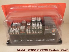 Modèle : Galion plateau Année : 1963 Couleur : Gris Fabricant : Ixo Référence : 5 Collection : Utilitaires Renault (Hachette) Matière : Zamak, châssis plastique Série limité : Non Boitage : Socle + blister Commentaires : Type R4247. Version plateau Laitier. |