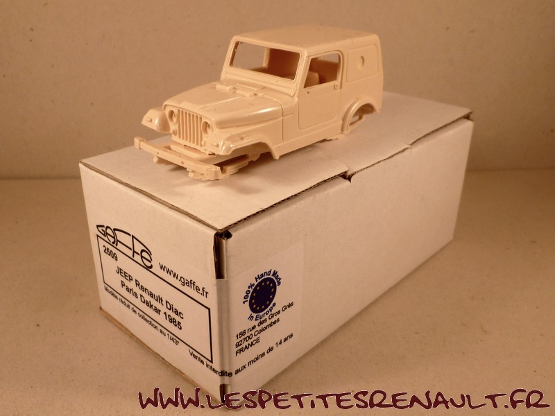 Modèle : Jeep CJ7 Année : 1985 Course : Paris-Dakar Equipage : #239 - Jacky et Gérard Bourgin Couleur : Jaune et blanc Echelle : 1/43 Fabricant : Gaffe Référence : 2509 Collection : Non Matière : Résine Série limité : Non Boitage : Boite carton Commentaires : -- |