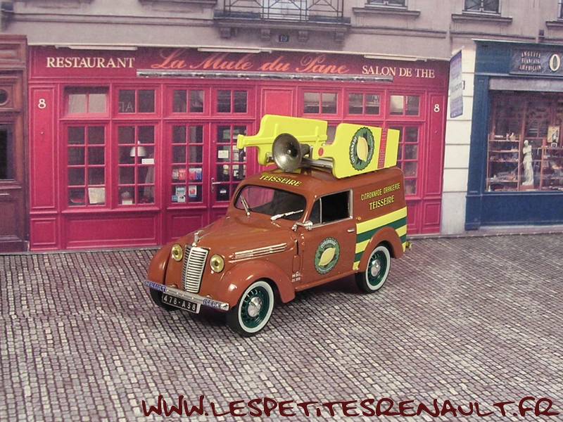 Modèle : Juvaquatre break tôlée Année : 1948 Couleur : Marron Echelle : 1/43 Fabricant : Ixo Référence : 31 Collection : Camionnettes d'antan (Altaya) Matière : Zamak, châssis plastique Série limitée : Non Boitage : Boite cristal 7x15 Commentaires : Dècoration Teisseire. Annoncée comme Dauphinoise, mais le modèle reproduit est une juvaquatre. |