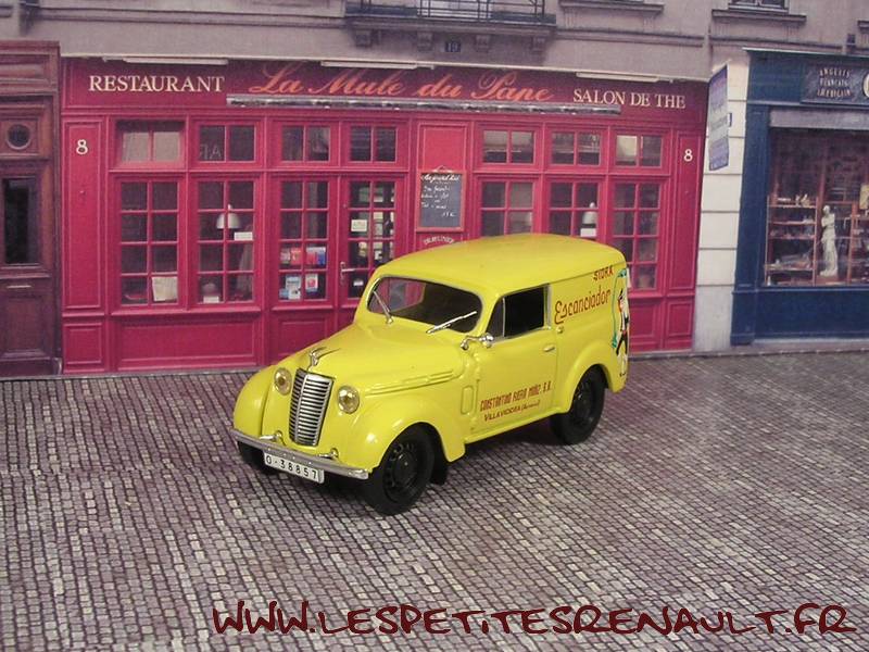 Modèle : Juvaquatre break tôlée Année : 1950 Couleur : Jaune Echelle : 1/43 Fabricant : Ixo Référence : 36 Collection : Furganeta de antanao (Altaya) Matière : Zamak, châssis plastique Série limitée : Non Boitage : Boite cristal 6x13 Commentaires : Décoration Cidra Escanciador. Série presse espagnole. |