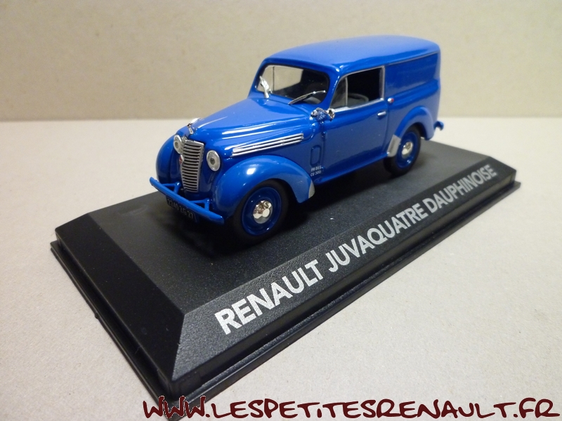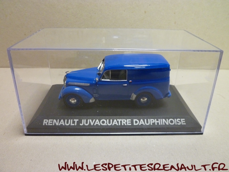 Modèle : Dauphinoise tôlée Année : 1956 Couleur : Bleue Echelle : 1/43 Fabricant : Ixo Référence : 31 Collection : Les voitures de mon père (Atlas) Matière : Zamak, châssis plastique Série limitée : Non Boitage : Boite cristal + surboite Atlas Commentaires : Modèle présenté comme étant une Juvaquatre Dauphinoise. Il s'agit en fait simplement d'une Dauphinoise |