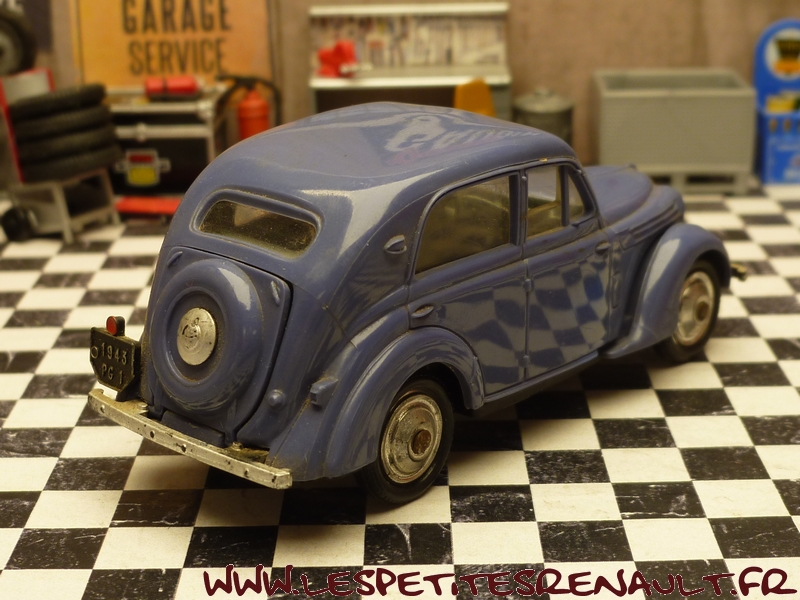 Modèle : Juvaquatre berline Année : 1943 Couleur : Grise Echelle : 1/43 Fabricant : Norev Référence : 10 Collection : Non Matière : Plastique Série limitée : Non Boitage : Boite plastique + socle carton Commentaires : Version civile ayant servi à produire l'outillage Eligor. Coffre arrière ouvrant. |
