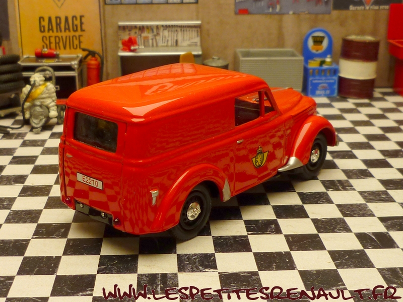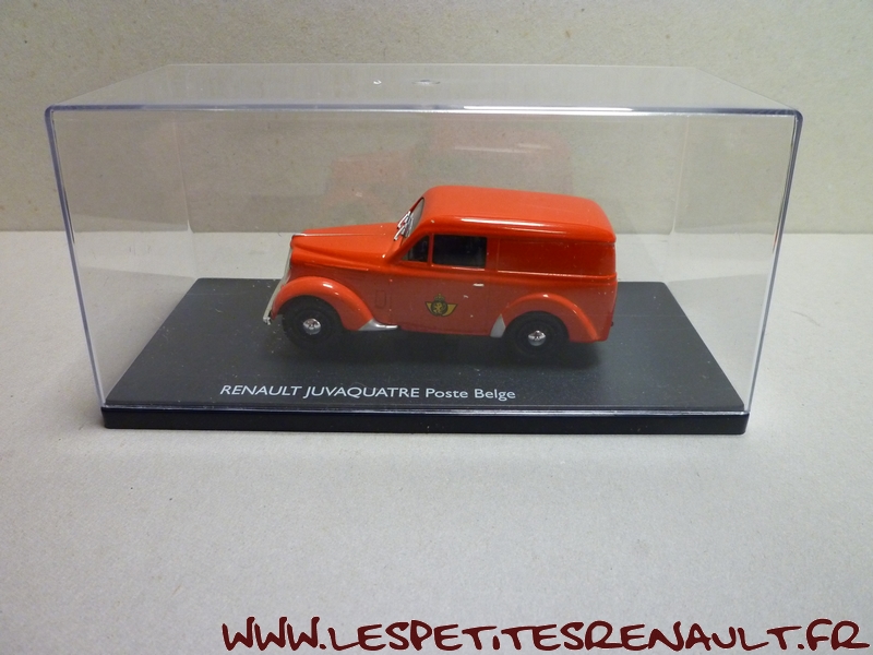 Modèle : Juvaquatre break tôlé Année : 1951 Couleur : Rouge Echelle : 1/43 Fabricant : Eligor Référence : 100963 Collection : Non Matière : Zamak, châssis plastique Série limitée : Non Boitage : Boite cristal + surboite Commentaires : Version Poste Belge |