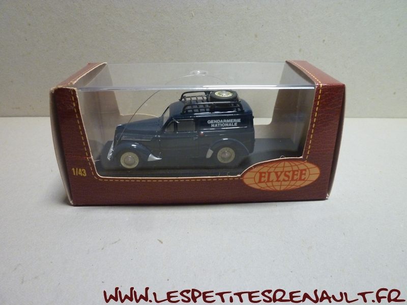 Modèle : Dauphinoise tôlée Année : 1956 Couleur : Bleu marine Echelle : 1/43 Fabricant : Elysée Référence : ELY566 Collection : Non Matière : Résine Série limitée : Non Boitage : Boite cristal + surboite Commentaires : Modèle indiqué comme Juvaquatre, mais avec une caisse de Dauphinoise. Les jantes ne sont pas conformes. |