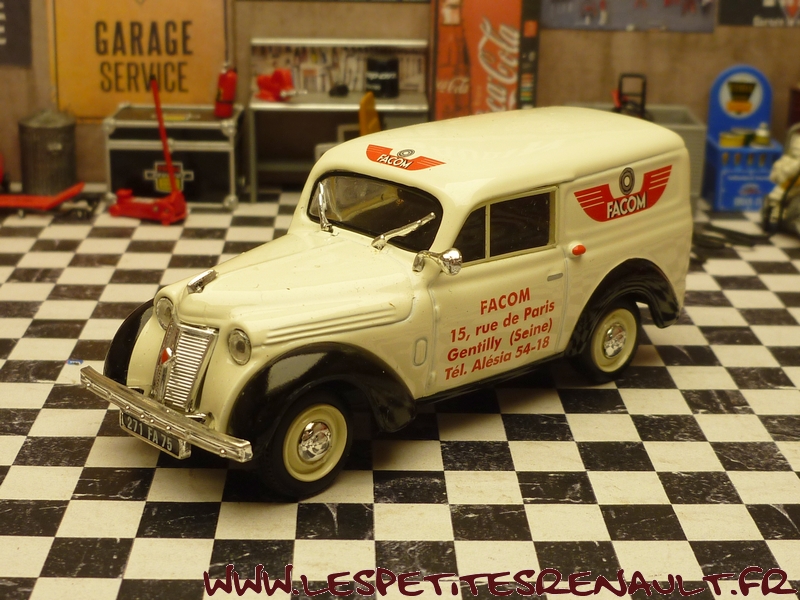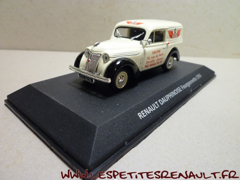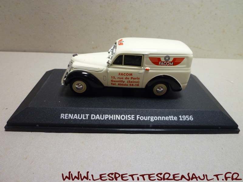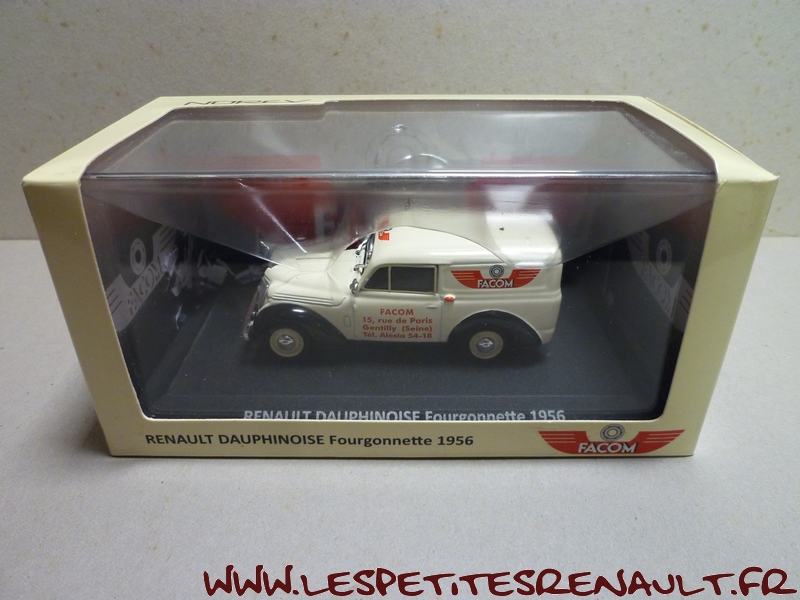 Modèle : Dauphinoise Année : 1956 Couleur : Beige Echelle : 1/43 Fabricant : Norev Référence : Sans référence Collection : Non Matière : Zamak, châssis plastique Série limitée : Oui Boitage : Boite cristal + Surboite Facom Commentaires : Modèle offert aux clients qui achetaient un lot d'outillage. |