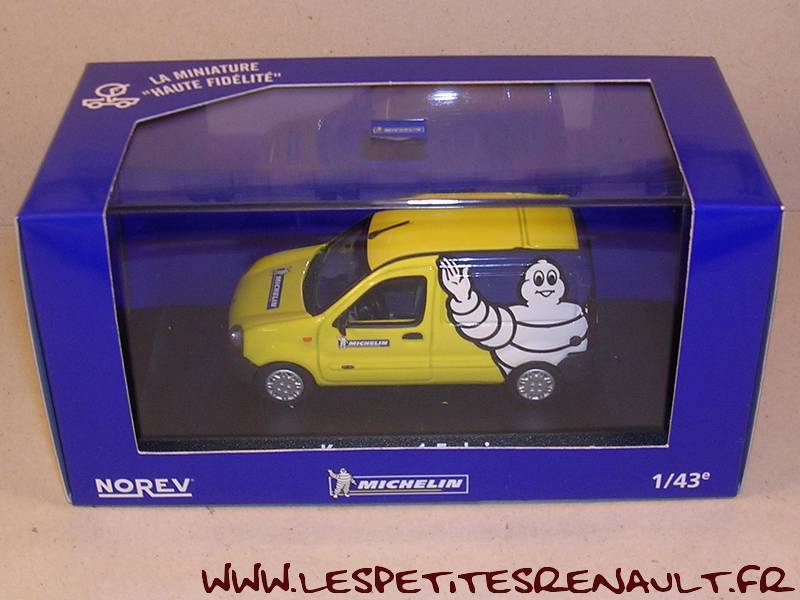 Modèle : Kangoo I phase 1 tôlé Année : 2001 Couleur : Jaune et bleu Echelle : 1/43 Fabricant : Norev Référence : 511310 Collection : Non Matière : Zamak Série limitée : Non Boitage : Boite cristal 8x15, surboite Michelin Commentaires : Décoration Michelin |