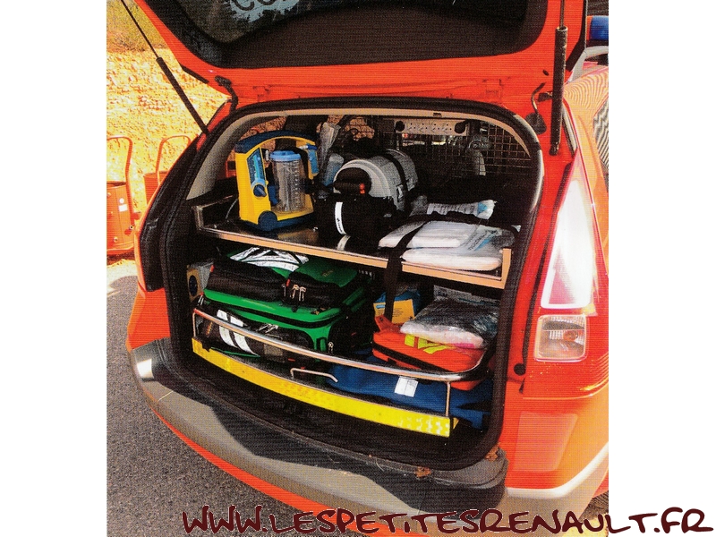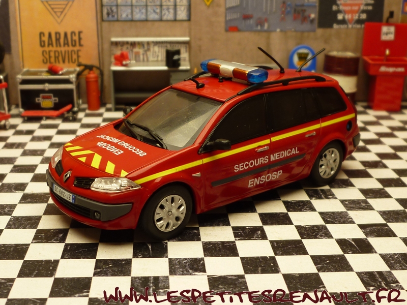 Modèle : Megane II Estate Année : 2005 Couleur : Rouge Echelle : 1/43 Fabricant : Ixo Référence : 38 Collection : Véhicules légers des Sapeurs Pompiers (Hachette) Matière : Zamak, châssis plastique Série limitée : Non Boitage : Blister Commentaires : Megane Estate (break) 2005 1.9l DCI 130cv équipée en VSM (Véhicule de Secours Médical). Véhicule école utilisé uniquement pour la formation des Officiers de l'ENSOSP (Ecole Nationale Supérieure des Officiers des Sapeurs Pompiers) sur les sites d'Aix en provence et de Vitrole. |