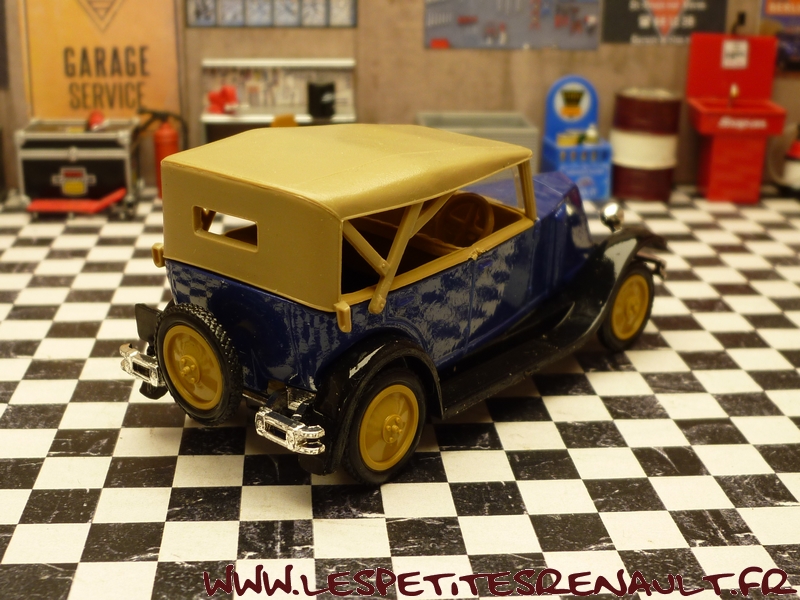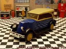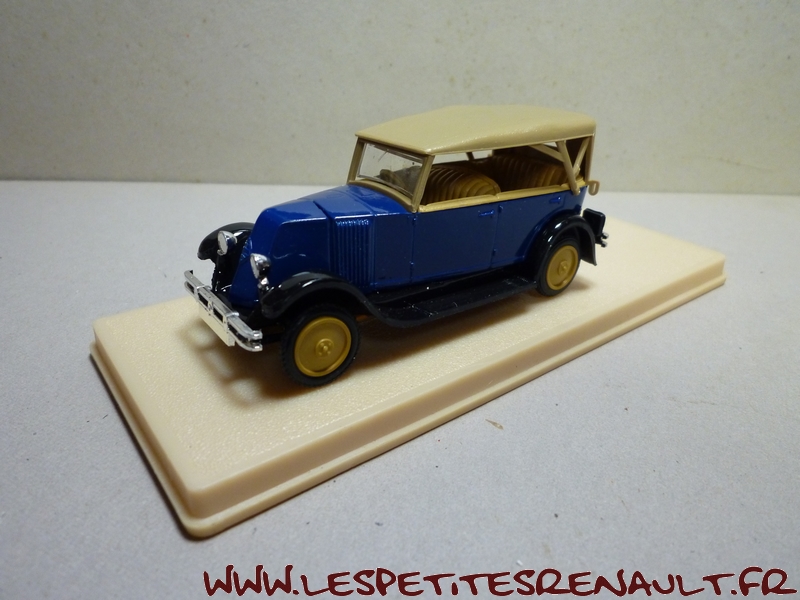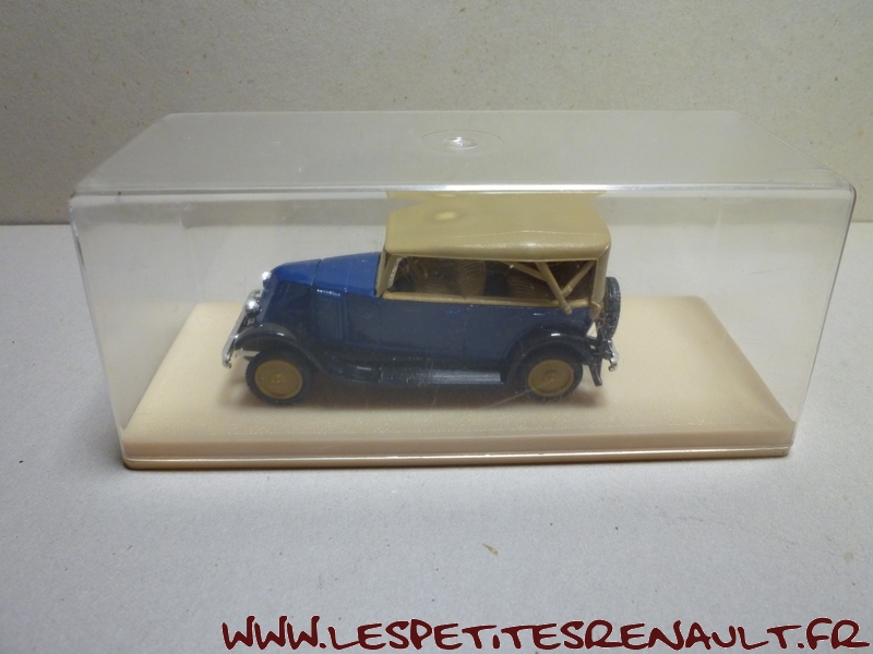 Modèle : NN2 Torpedo Année : 1929 Couleur : Bleu et beige Echelle : 1/43 Fabricant : Eligor Référence : 1040 Collection : N/A Matière :Zamak, châssis plastique Série limitée : Non Boitage : Boite cristal 6x15 Commentaires : Version torpedo capoté Modèle indiqué comme [Torpédo NN 1927] mais la présence du pare-chocs doubles et les ailes galbées en font un type NN2 de 1929. Version avec ailes noires, caisse bleue et capote beige |