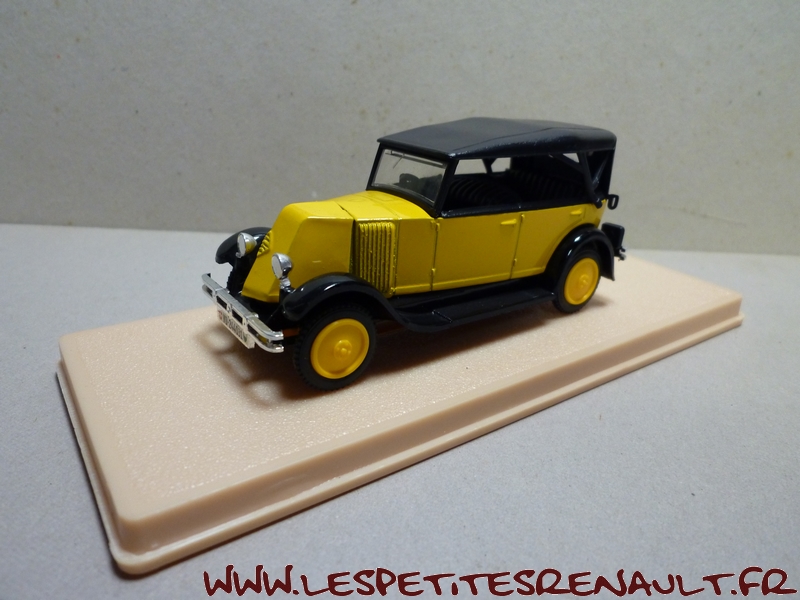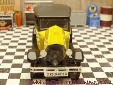 Modèle : NN2 Torpedo Année : 1929 Couleur : Jaune et noire Echelle : 1/43 Fabricant : Eligor Référence : 1040 Collection : Non Matière :Zamak, châssis plastique Série limitée : Non Boitage : Boite cristal 6x15, surboite Eligor Commentaires : Reprise du moule Norev Modèle indiqué comme [Torpédo NN 1927] mais la présence du pare-chocs doubles et les ailes galbées en font un type NN2 de 1929. Version capotée avec ailes noires, caisse jaune et capote noire Modèle épuisé en 1983 et ré-éditée en 1998 sous la référence 100076 Présence d'une immatriculation suisse |