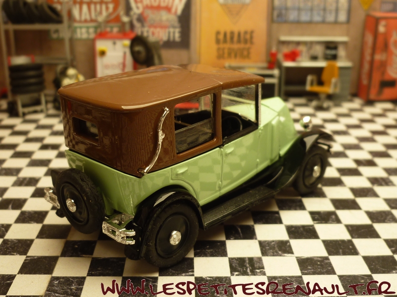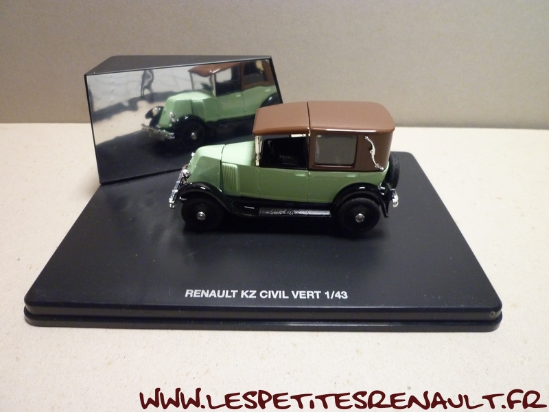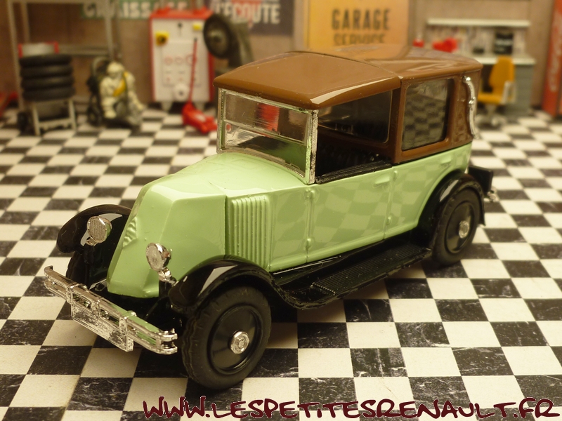 Modèle : 6cv type NN1 Coupé de Ville Année : 1927 Couleur : verte et marron Echelle : 1/43 Fabricant : Eligor Référence : 7711223583 Collection : Non Matière : Zamak, châssis plastique Série limitée : Non Boitage : Boite cristal + surboite Commentaires : Socle indiquant un type KZ, mais il s'agit d'un type NN1 (ou NN2) |