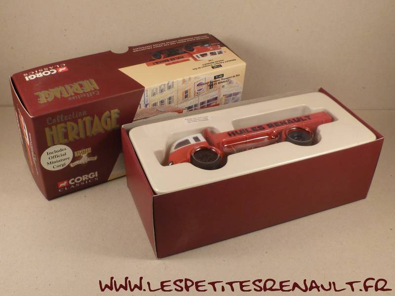Modèle :Renault Fainéant PlateauAnnée : 1951 Couleur : Blanc et rouge Fabriquant : Corgi Echelle : 1/50 Référence : 71102 Collection : Corgi Héritage Matière : Zamak Série limité : 1638/5000 Boitage : Boite carton Commentaires : Décoration Huiles Renault |