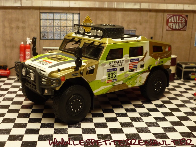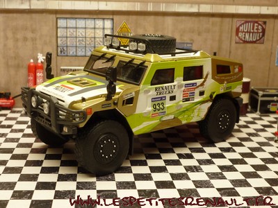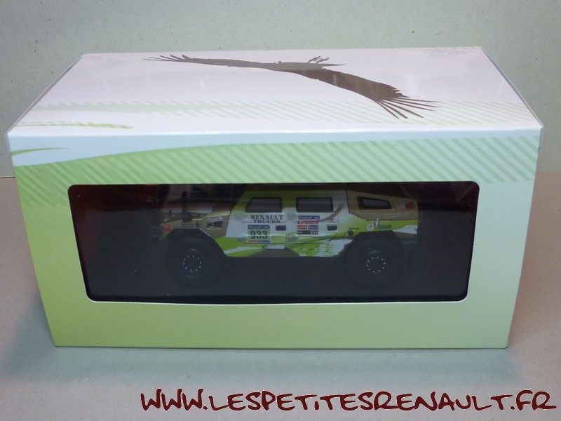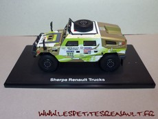 Modèle : Sherpa Année : 2011 Course : Dakar Equipage : #933 Adrian - Deswet Couleur : Vert, blanc et or Echelle : 1/43 Fabricant : Eligor Référence 114409 Collection : Non Matière : Zamak, châssis plastique Série limité : Non Boitage : Boite carton + plastique Commentaires : Engagé par Renault Trucks Argentina, il s'agit d'un véhicule de présentation presse |
