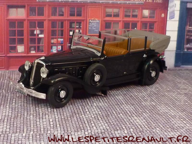 Modèle : Reinastella Cabriolet Année : 1938 Couleur : Noire Echelle : 1/43 Fabricant : Norev Référence : 2696 013 Collection : Voitures de chefs d'états (Atlas) Matière : Zamak, châssis plastique Série limitée : Non Boitage : Boite cristal 7x14 + surboite Commentaires : Version 1931 modifiée en 1936. Véhicule utilisé en 1938 par albert Lebrun lors de l'accueil de Georges VI |