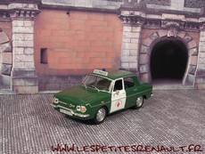 Modèle : Renault 10 Phase 1 Année : 1967 Couleur : Verte et blanche Echelle : 1/43 Fabricant : Ixo Référence : 1 Collection : Nuestros coches de Policia (Altaya) Matière : Zamak, châssis plastique Série limité : Non Boitage : Boite cristal 6x13 Commentaires : Décoration Guardia Civil |