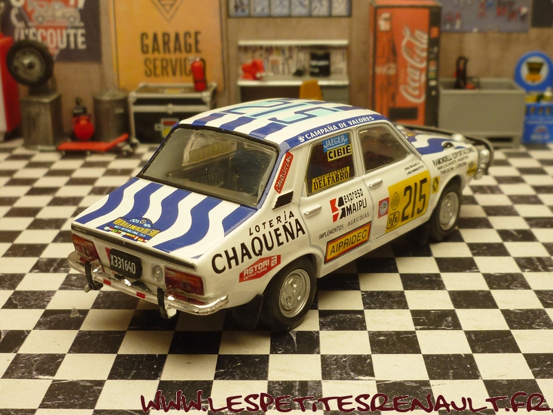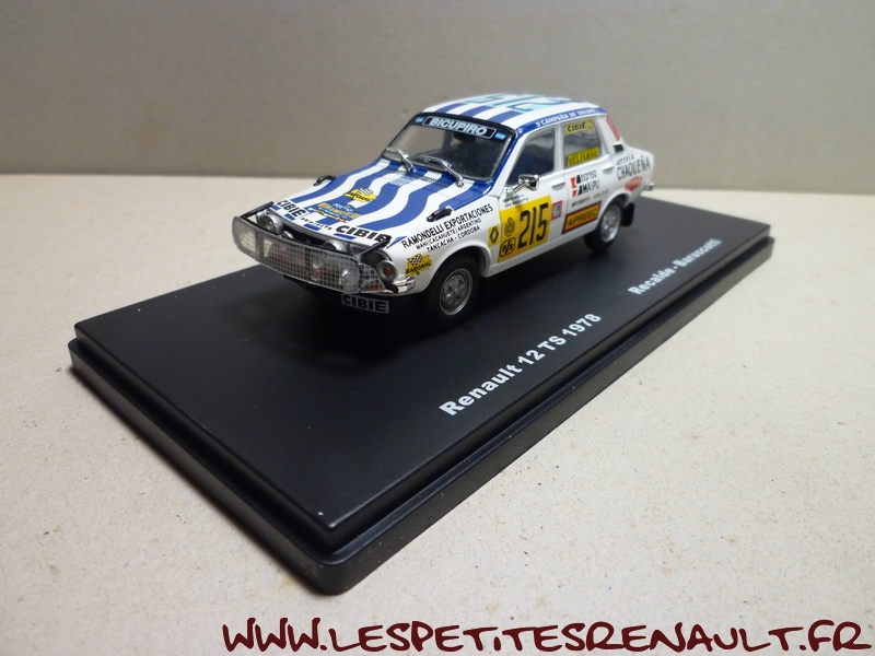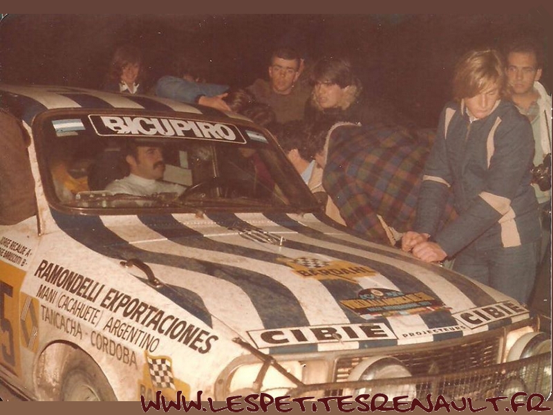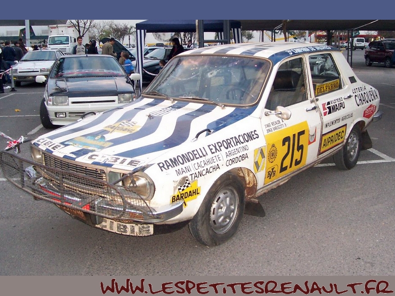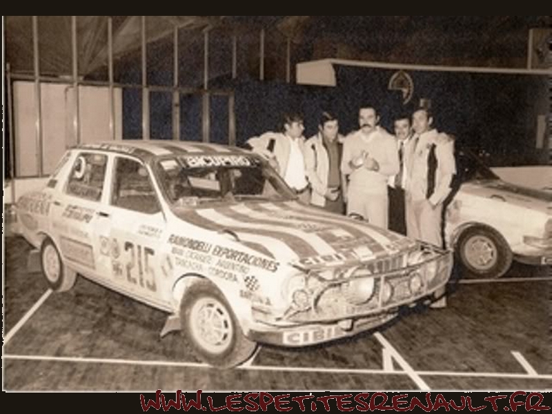 Cette Renault 12 a participé au Le Tour d'Amérique du Sud automobile, dont le nom officiel était "Rally Vuelta a América del Sur", également appelé "Marathon-Tour of South America". C'est la plus longue compétition de rallye marathon jamais organisée, une seule fois en 1978 durant plus d'un mois. L'épreuve couvre alors une distance totale de près de 20000 miles (28.592 kilomètres) en 25 étapes. Elle se dispute grâce à l'Automovil Club Argentino juste après la Coupe du monde de football 1978 selon un trajet Buenos Aires-Caracas-Buenos Aires à travers dix pays (Argentine, Uruguay, Paraguay, Venezuela, Colombie, Brésil, équateur, Pérou, Bolivie, Chili, et encore Argentine), avec 57 voitures au départ le 17 août de la même année. Elle s'inspire d'une compétition presque à l'identique disputée trente ans auparavant, en 1948. Trois grandes classes sont distinguées alors. La R12 est en classe B avec Recaldeen pilote et Buroscotti pour copilote. Ils remporteront cette classe. En classe D (la plus puissante) on y retrouve Les Mercedes officielles 5 litre SLC, ainsi que des Ford Falcon 221 et des Citroën CX 2400. Des primes à la vitesse sont instituées sur certaines portions de routes, avec des gains chronométriques à la clé. Les réparations ne sont autorisées que durant quelques heures avant l'élimination et uniquement avec des outils embarqués, sur des véhicules ne pouvant être tractés et ne pouvant être poussés que par le pilote et le copilote, quel que soit le climat. Seul un tiers des équipages engagés (24 exactement) rallient l'arrivée, au point même du départ, l'après-midi d'un 24 septembre pluvieux devant une foule conséquente, après une dernière étape de 1080 kilomètres. Le plan de course traverse en 39 jours entre autres les solitudes des montagnes andines, les déserts de la Patagonie et les chaleurs du Mato Grosso, ainsi que de vastes régions forestières tropicales aux larges rivières. Fort du succès populaire rencontré, l'Automovil Club Argentino organise dès l'année suivante le premier Rallye du CODASUR (Confederacion Deportiva Automovilistica Sudamericana), qui devient à son tour dès la saison suivante le Rallye d'Argentine comptabilisé en Championnat du monde des rallyes. |