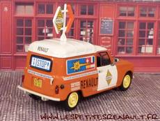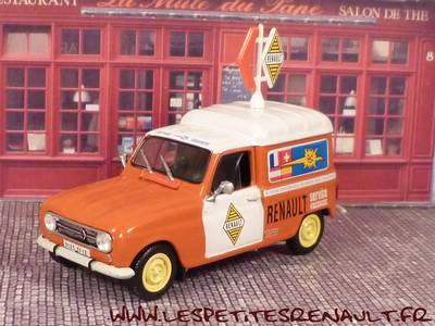 Modèle : Renault 4 F4Année : 1971 Couleur : Orange et blanc Fabriquant : Universal Hobbies Référence : 81 Collection : Renault Collection (M6) Matière : Zamak, châssis plastique Série limité : Non Boitage : Boite cristal 8x15. Commentaires : Décoration Renault Service vacances |
